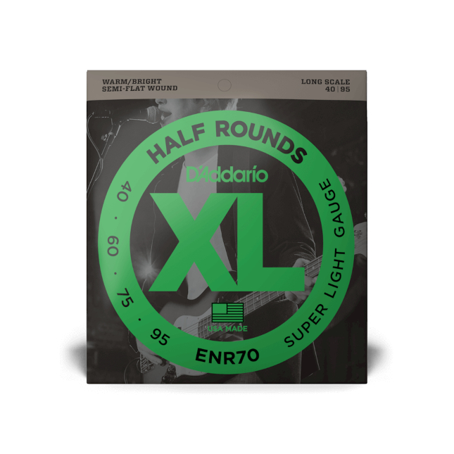 Jogo de 4 cordas de baixo elétrico. Escala Longa. Tensão Super Light. Cordas em nickel. Calibre: 040, 060, 075, 095.