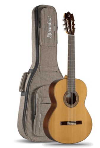 Tampo maciço em cedro, corpo em sapelli, escala em pau-santo da Índia, sanefas em pau-santo da Índia.