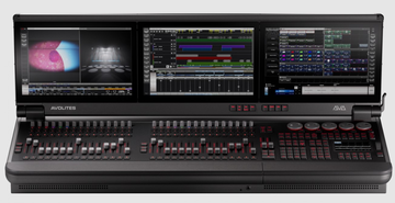 Consola de controlo de iluminação profissional equipada com faders motorizados sensíveis ao toque, encoders de alta resolução e ecrãs tácteis capacitativos de elevada luminosidade, oferecendo controlo preciso, rapidez de programação e fiabilidade em produções de grande escala.