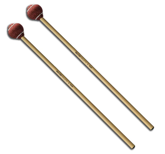 Par de bilros para Marimba e Vibrafone dureza Soft, com cabeça redonda em lã, 39cm de comprimento, pega em Rattan.