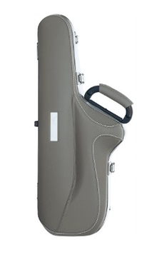 Estojo para saxofone Alto com tampa e base cobertas com pele natural. Tem duas correias acolchoadas tipo mochila e extraíveis, asa lateral, duas fechaduras BAM com chave.