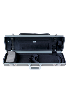 Estojo de violino modelo compacto. Proteção aumentada contra arranhões. Bolso para partituras. Cor cinzenta.