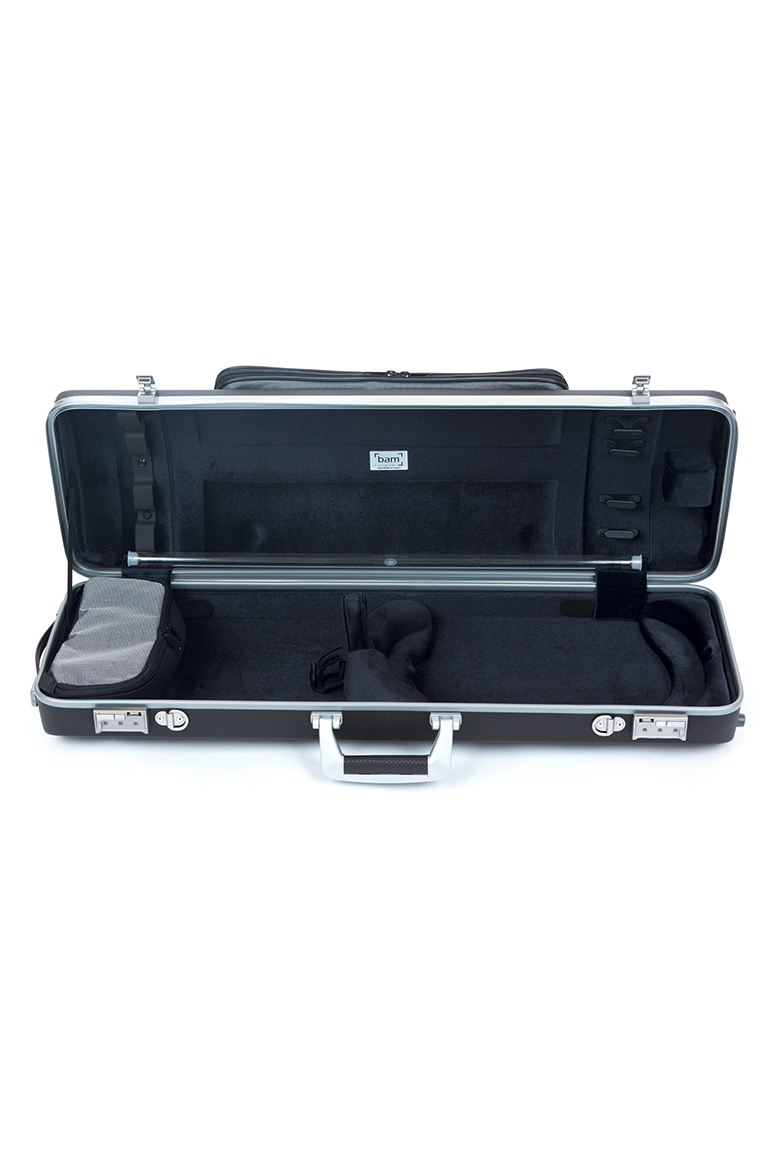 Estojo de violino modelo compacto. Proteção aumentada contra arranhões. Bolso para partituras. Cor preta.