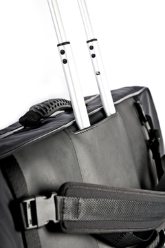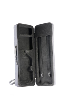 Estojo de violino rectangular, tipo mochila ajustável para trolley. Interior com espuma em poliuretano de alta densidade. Fechos impermeáveis. Cor preta.