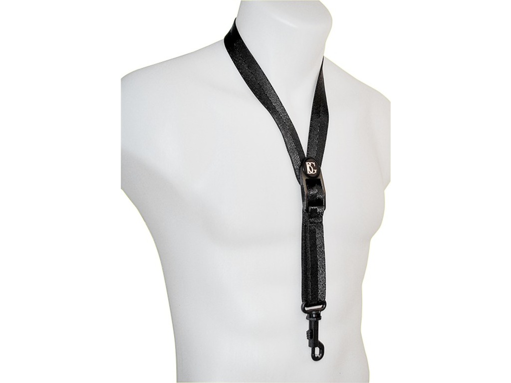 Correia para Sax Soprano, Alto ou Tenor, em nylon preto, reforço, com mosquetão.