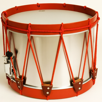 Caixa de Guerra em pele Acrilica \"REMO\", de estrutura em Inox e aros de madeira com corda de nylon, 10 afinadores de couro, bordões metálicos e afinador e fixador de bordões. Incluí par de baquetas. Dimensões 14\" x 12\"