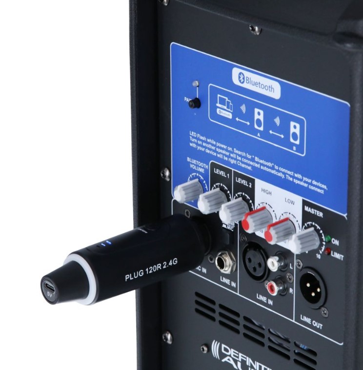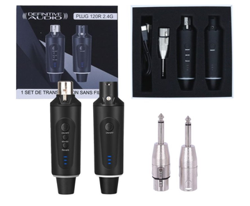 O PLUG 120R 2.4G é um sistema sem fio para microfones dinâmicos ou condensadores. Consiste em um transmissor e receptor recarregáveis em formato XLR. Opera na banda 2,4G e têm um alcance de aproximadamente 50M sob certas condições.