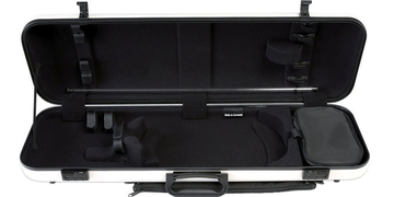 Estojo de violino fabricado na Alemanha, armação em termoplástico extremamente resistente à rotura, peso aproximado de 2.1kg, excecional isolamento térmico, sistema acolchoado de suspensão, suporte giratório de 2 arcos patenteado pela Gewa, bolsa desmontável para acessórios, 2 correias desmontáveis tipo mochila em neopreno, acolchoado interior tipo veludo negro, cobertura de proteção para o instrumento, fecho de segurança com código, bolsa de partitura com clips, asa lateral opcional.