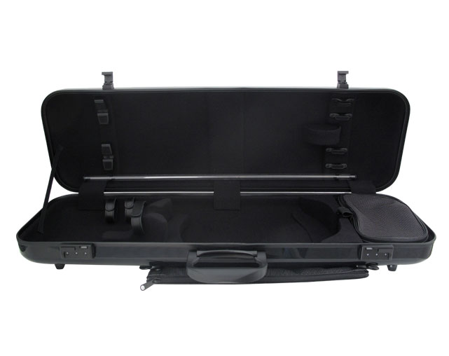 Estojo de violino fabricado na Alemanha, armação em termoplástico extremamente resistente à rotura, peso aproximado de 2.1kg, excecional isolamento térmico, sistema acolchoado de suspensão, suporte giratório de 2 arcos patenteado pela Gewa, bolsa desmontável para acessórios, 2 correias desmontáveis tipo mochila em neopreno, acolchoado interior tipo veludo negro, cobertura de proteção para o instrumento, fecho de segurança com código, bolsa de partitura com clips, asa lateral opcional.