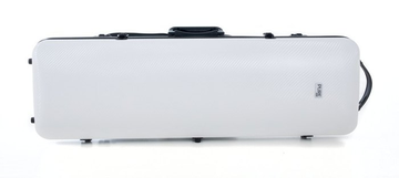 Estojo rígido em policarbonato, sistema de suspensão acolchoado, ponte flexível para arco, braçadeira giratória para arco patenteada, bolsa para acessórios amovível, bolsa exterior para partituras removível, mochilas removíveis, interior preto, inclui pano de seda.