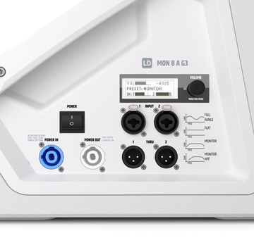 O MON 8 A G3 W é o membro mais compacto da nova família de monitores de palco. Extremamente discreto e versátil, pode ser utilizado como monitor de palco, em configurações de DJ, como altifalante FOH montado num suporte, como satélite em sistemas 2.1 ou ainda como altifalante de linha de atraso (delay line). Tendo em conta o seu tamanho reduzido, oferece uma resposta em frequência surpreendentemente ampla até aos 59 Hz, proporcionando um som full range impressionante.