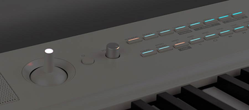 Controlador em tempo real: 3 pedais atribuíveis, 1 Joystick (Pitch Bend, Modulação)