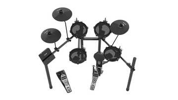 Kit composto por 1 tarola 8″ (mesh, duas zonas), 3 timbalões 8″ (mesh, zona única), 1 hi-hat mesh com controlador, 1 crash (mesh, duas zonas, com função choke), 1 ride (mesh, duas zonas, com função choke), 1 bombo 6″ em borracha (compatível com pedal duplo) e o módulo DM-110. Com metrónomo, modo coach, 12 kits pré-definidos, 3 kits de utilizador, efeitos e equalizador. Porta USB áudio/MIDI, entrada AUX, Bluetooth (via adaptador), saída para headphones, saída L/Mono, entrada para trigger extra. Alimentação: DC-9V.
