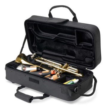 Estojo para trompete com alças acolchoadas, interior em espuma rígida EPS. Exterior robusto em nylon 600D. Fechos de longa duração. Bolsa exterior para partituras e acessórios. Forro de veludo não abrasivo. 2 compartimentos interiores para acessórios Peso 1.9kg