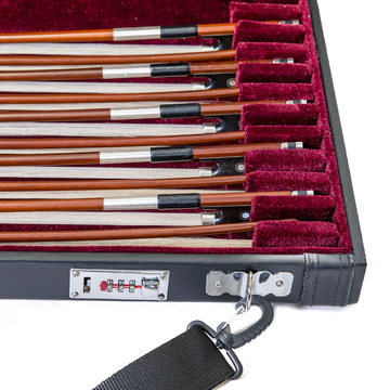 Estojo para 24 arcos de violino, interior em terciopelo, correia de ombro.