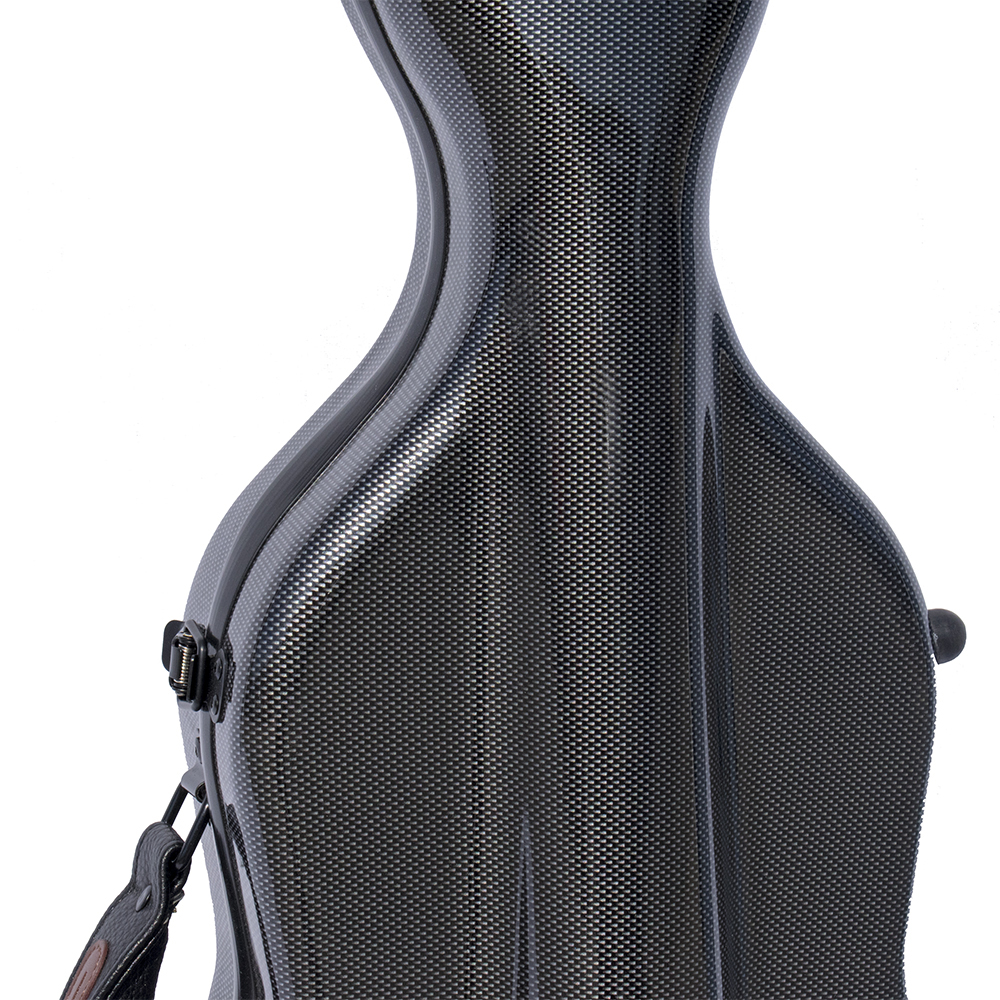 Estojo para violino 4/4 ou viola 14”, fabricado em material compósito, com capa exterior de policarbonato, acabamento brilhante 3D, Asa lateral, correias tipo mochila com mosquetão de segurança, 4 fechos, interior em Terciopelo de alta qualidade, espaço para 2 arcos, compartimento para almofada e bolsa para acessórios, manta protectora do instrumento, peso 1.9kg.