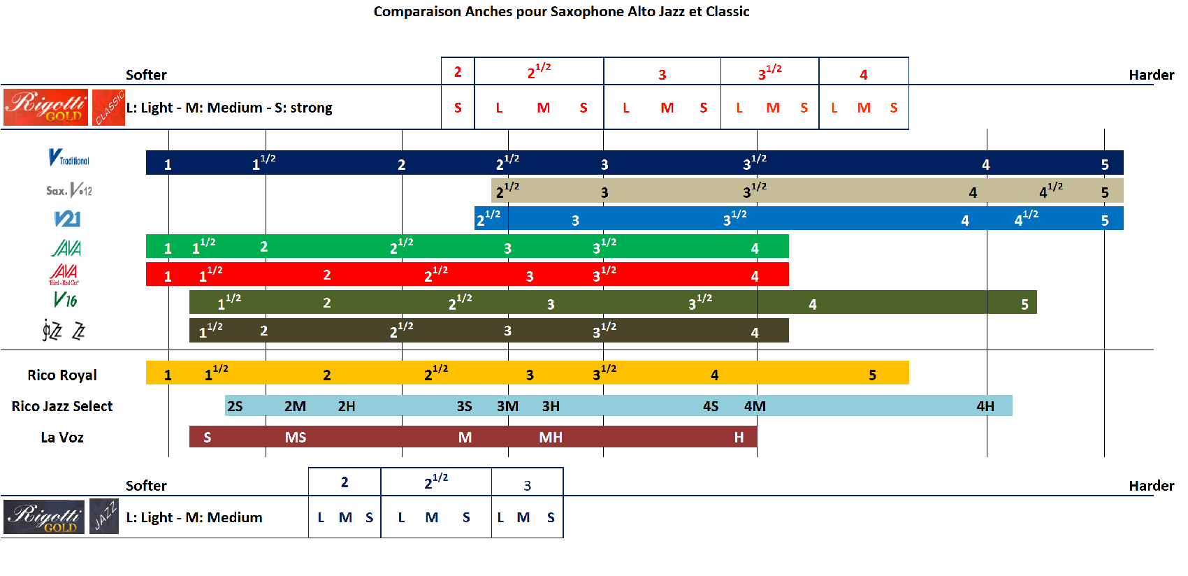 Caixa de 10 palhetas para Sax Alto Rigotti Gold Jazz Nº 3.5