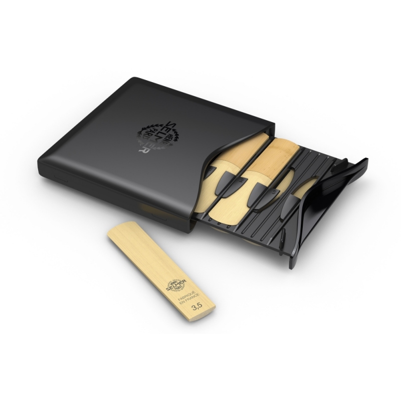 Estojo com 6 palhetas feitas de cana selvagem do sul de França.