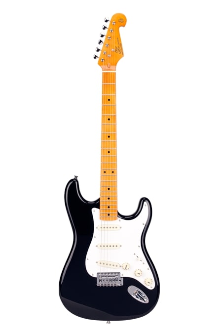 Guitarra elétrica, formato stratocaster. Corpo em basswood maciço. Braço em bordo canadiano selecionado. Truss rod de 2 sentidos. 21 Trastes. 3 Pickups single coil. Controlo de volume, controlo de tom e seletor de 3 vias. Acabamento brilhante. Inlcui saco (EB400).