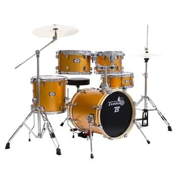 Kit completo de bateria acústica. Inclui bombo de 20x16”, timbalões suspensos de 10x8” e 12x9”, timbalão de chão de 14x14” e tarola de 14x5,5”. Peles Remo UT. Hardware incluído: suporte prato girafa TB CBS200, suporte choques TB HH200, suporte tarola TB SS200, banco TB DT200s e pedal de bombo TB FP200. Inlcui baquetas 5A. Peso: 46kg.