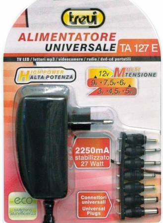 Transformador universal 3/4,5/5/6/7,5/9/12V, 2250mA max com 7 fichas comutáveis.