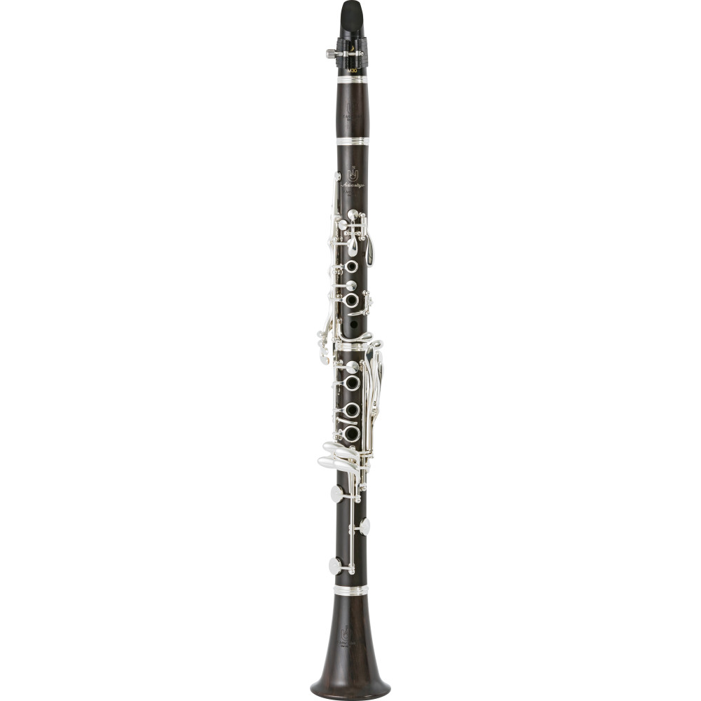 Clarinete em Si bemol, sistema francês, corpo em Granadilha selecionada, dois barriletes, 18 chaves prateadas, furação advantage, sapatilhas de couro F. Arthur Uebel. Estojo de super luxo, boquilha Vandoren, abraçadeira Rovner, palheta Vandoren e Acessórios de limpeza incluídos.