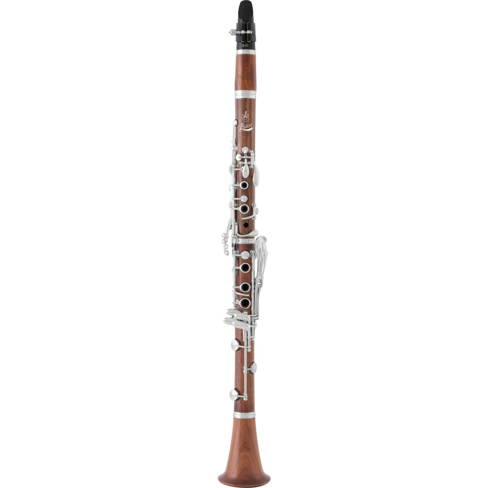Clarinete em Si bemol, sistema francês, corpo em Mopane selecionada, dois barriletes, 18 chaves prateadas, furação Revê, sapatilhas sapatilhas LP Gore. Estojo de super luxo, boquilha Vandoren, abraçadeira Rovner, palheta Vandoren e Acessórios de limpeza incluídos.