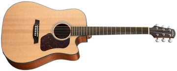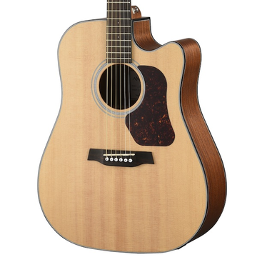 Guitarra electroacústica com tampo Sitka Spruce sólido, fundo e ilhargas Mahogany laminado, braço Mahogany reforçado c/ fibra de vidro, escala e cavalete Rosewood, pestana GRAPH TECH NuBone, roseta/ binding em decal/Plástico ABS Preto, truss rod Two-Way, carrilhões Die-Cast cromados, pickguard Faux-tortoise shell, pickup 'WALDEN Active' EQ & tuner, acabamento UV cured PE - Open Pore Satin Finish, cordas D'ADDARIO EXP11.