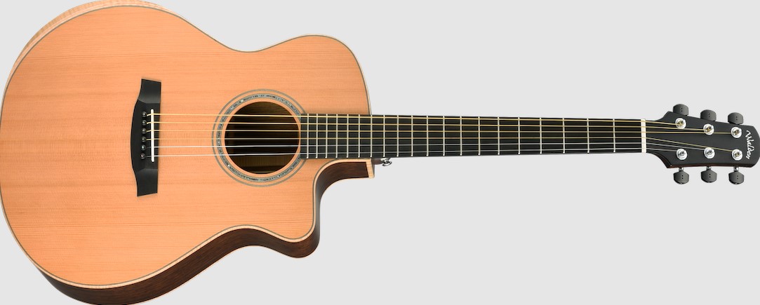 Guitarra electroacústica com tampo Cedar Sólido com apoio de braço ergonómico em Maple trabalhado, fundo e ilhargas Ovangkol sólido, braço Mahogany reforçado c/ Graphite, escala e cavalete Ebony, pestana osso, roseta/ binding Maple trabalhado, truss rod Two-Way, carrilhões 'GRAPH TECH Ratio-tuned' e Pretos, pickup 'FISHMAN Presys Blend' EQ, microphone & tuner, acabamento UV cured Satin Finish, cordas D'ADDARIO EXP11. Inclui estojo rígido Walden.