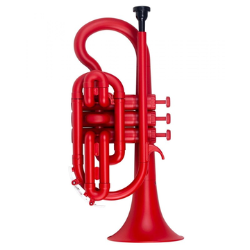Cornetim em Sib com corpo em ABS. Pistões em aço inoxidável. Campânula de 129mm e tubagem de 11,7mm. Saco e bocal incluídos. Peso: 0,35Kg. Acabamento em vermelho matte.