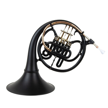 Trompa simples em Si bemol em ABS. Tudel e cilindros em metal. Campânula com 30mm. Cilindros em aço inoxidável. Acabamento preto matte. Saco e bocal incluídos.